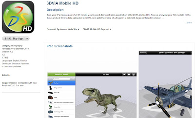 “With 3DVIA Mobile HD for the iPad, users can access, view and interact with thousands of high-quality models hosted on the 3DVIA.com content warehouse with the swipe of a finger.”