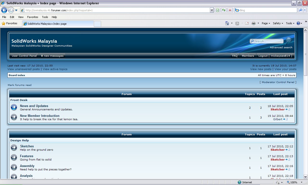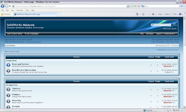 A young Malaysian saw that we, SolidWorks users here need an area, a chat room for us to share our SolidWorks knowledge and tips. Therefore, this young man, Farizal took the initiative to start a forum: Malaysia SolidWorks Designer Communities.