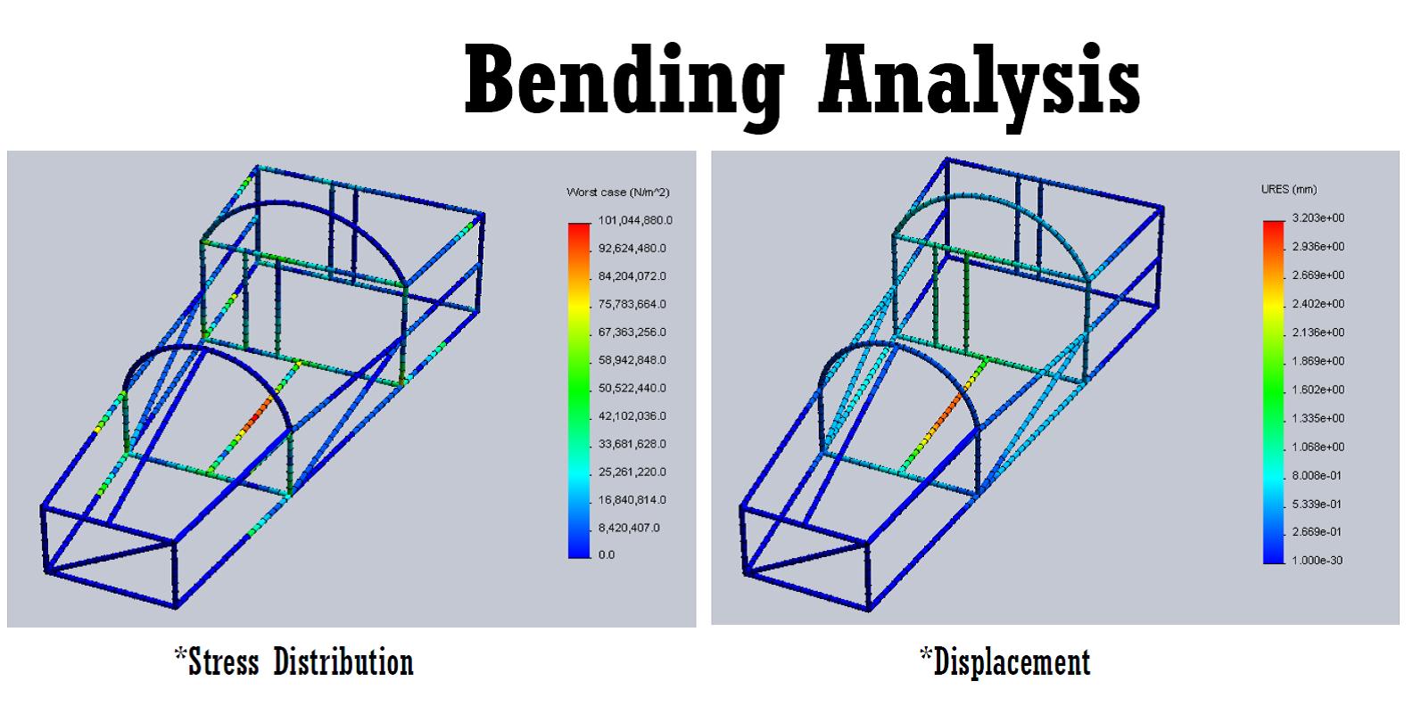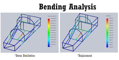 Providing the proof on bending analysis of the car frame definitely helps the team in term of fabricating the lightest frame as possible. With the result of bending analysis using SolidWorks simulation software, the entire structure was calculated and the best design for framework with highest safety factor and lightest weight had been produced.