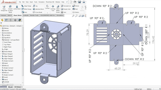 Dedicated features for sheet metal design in SOLIDWORKS, quick and easy to pick up.