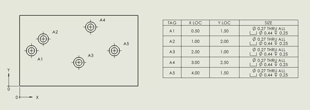 Hole table comes with the tagging for the hole, standard, depth and the coordinate.