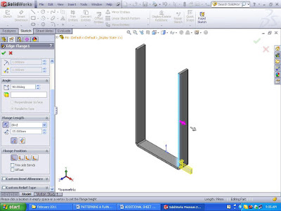 4. Create the edge flange. Click on the Edge Flange Features and click on the desired edge. Use parameters as shown below.